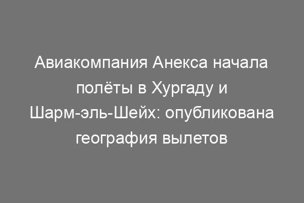 Авиакомпания Анекса начала полёты в Хургаду и Шарм-эль-Шейх: опубликована география вылетов Поделиться: