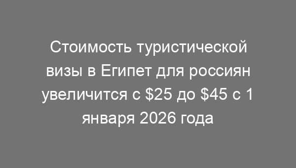 С 1 января 2026 года для российских граждан, въезжающих в Египет в туристических целях, вступает в силу новое положение о стоимости визового сбора: размер платы увеличивается на $20 — с $25 до $45 (по текущему курсу ЦБ РФ — ориентировочно?3 480). Решение принято египетским парламентом (Палатой представителей)...